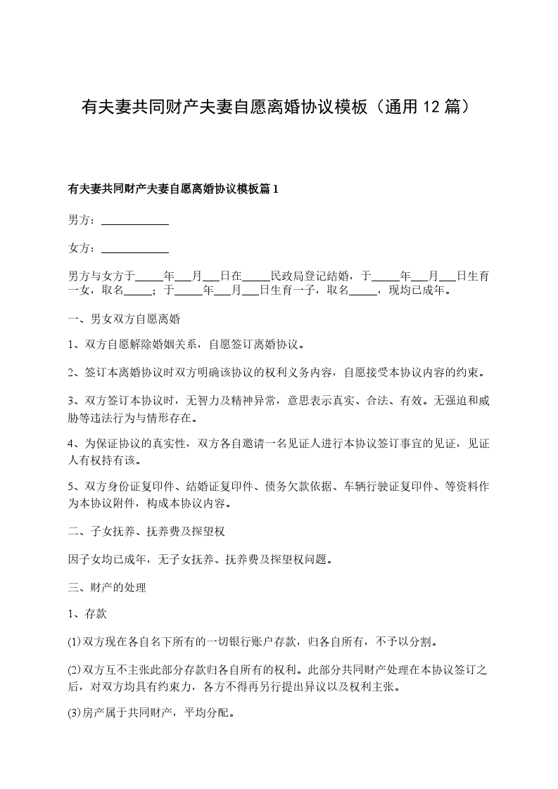 有夫妻共同财产夫妻自愿离婚协议书模板篇12