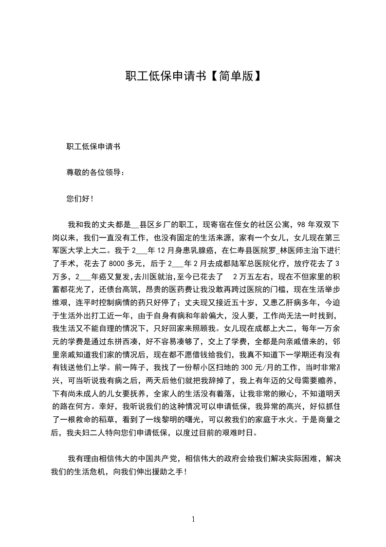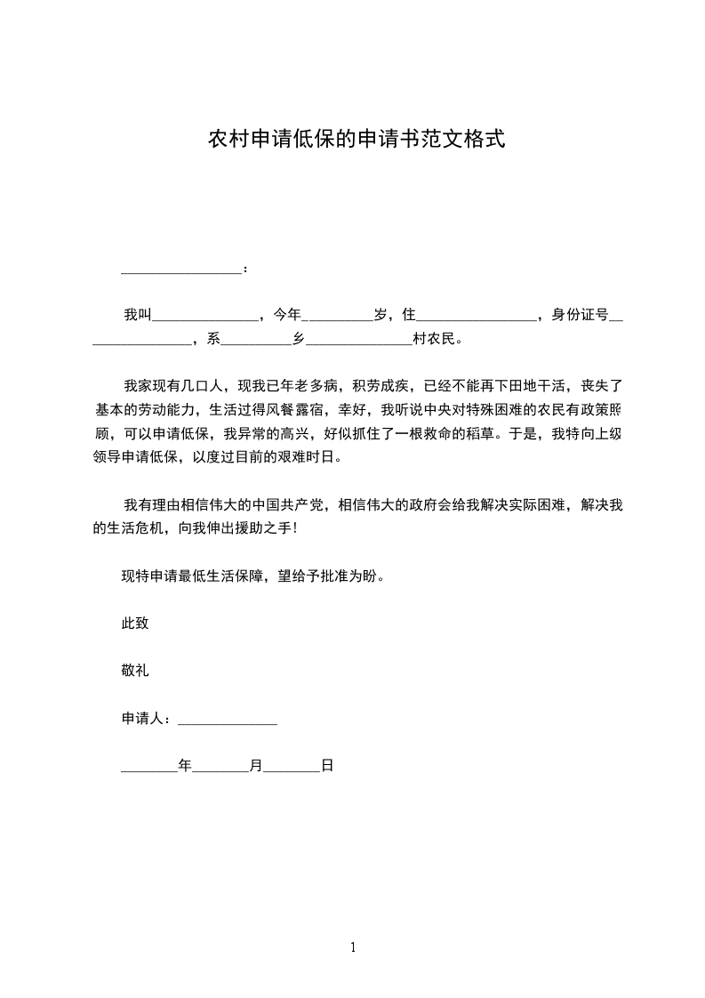由于我和我妻子年纪大了,干不动农活,加上积劳成疾,昂贵的医药费让我们没敢再跨过医院的门槛,此刻生活举步维艰,我听说我的这种状况能够申请低保,我异常的高兴,好似抓住了一根救命的稻草,看到了一线黎明的曙光,能够救我于水火。于是几经斟酌之后,我特向您们申请低保,以度过目前的艰难时日。特请求政府给我解决实际困难,给予我最低生活保障。我将万分感激。期望领导们能体察和批准。我相信伟大的中国共产党,相信伟大的政府会给我解决实际困难,解决我的生活危机,向我伸出援助之手