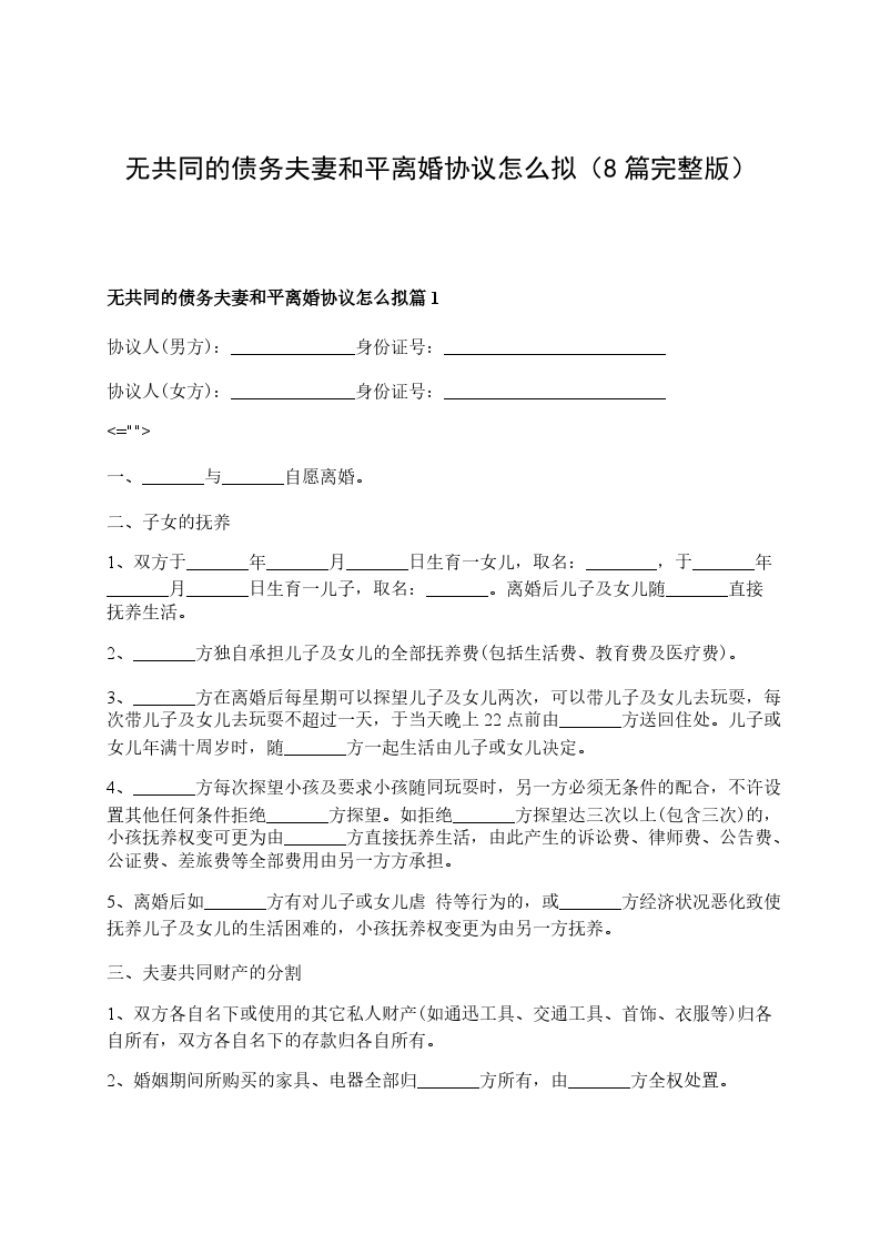 无共同的债务夫妻和平离婚协议怎么拟篇8