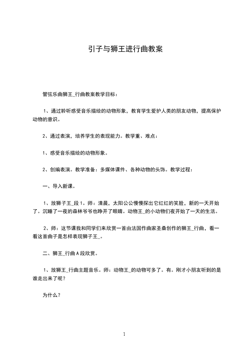 2、师:这节课我和同学们来欣赏一首由法国作曲家圣桑创作的狮王_行曲,看一看这首曲子是怎样表现狮子王_。