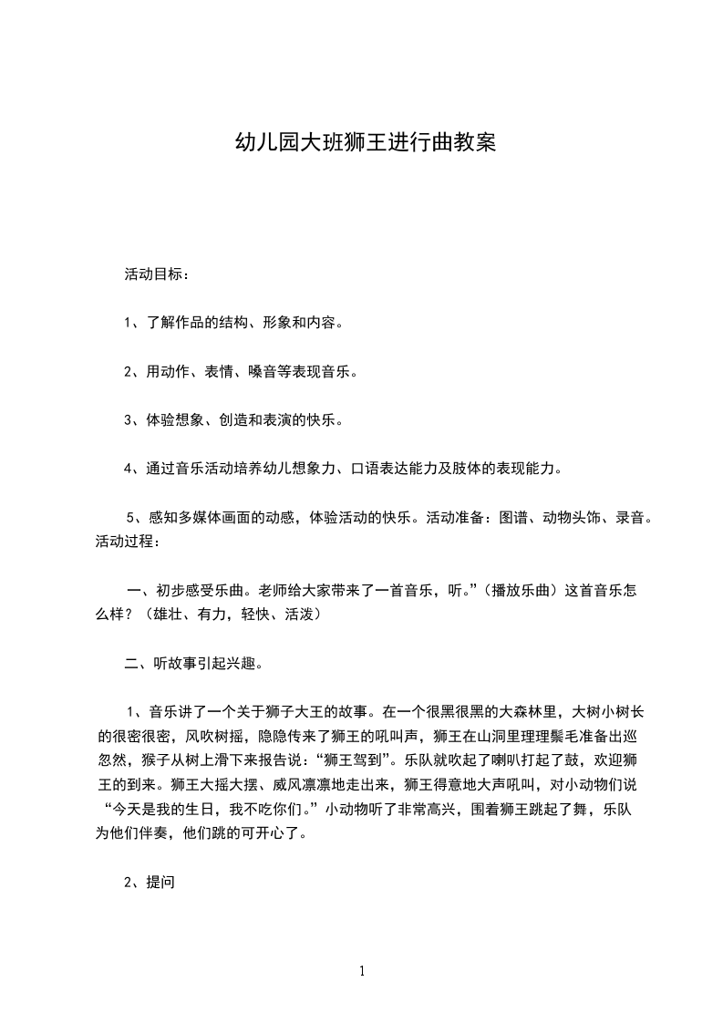 1、放狮王_行曲主题音乐。师:动物王_的动物可多了。有。刚才小朋友听到的是谁走出来了呢?