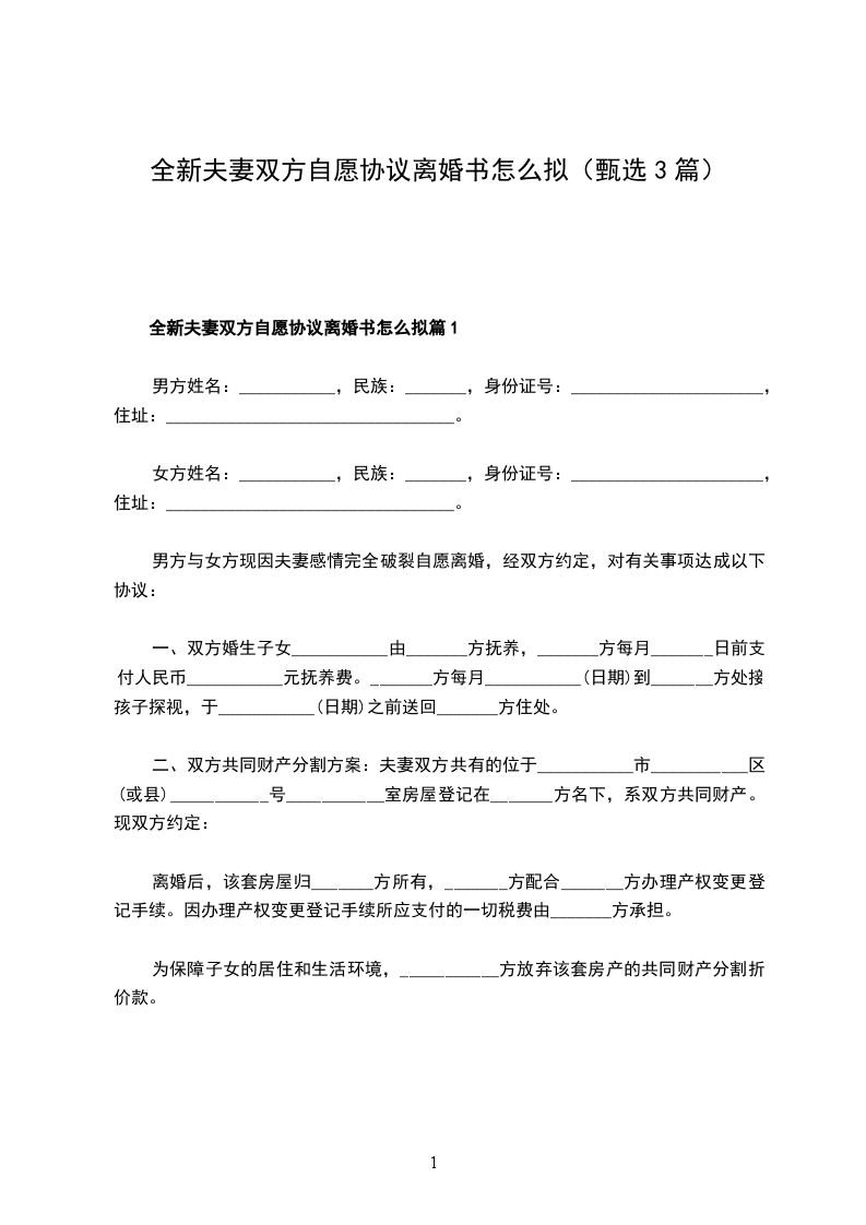 本协议一式叁份,双方各执一份,婚姻登记机关存档一份,在双方签字,并经婚姻登记机关办理相应手续后生效。