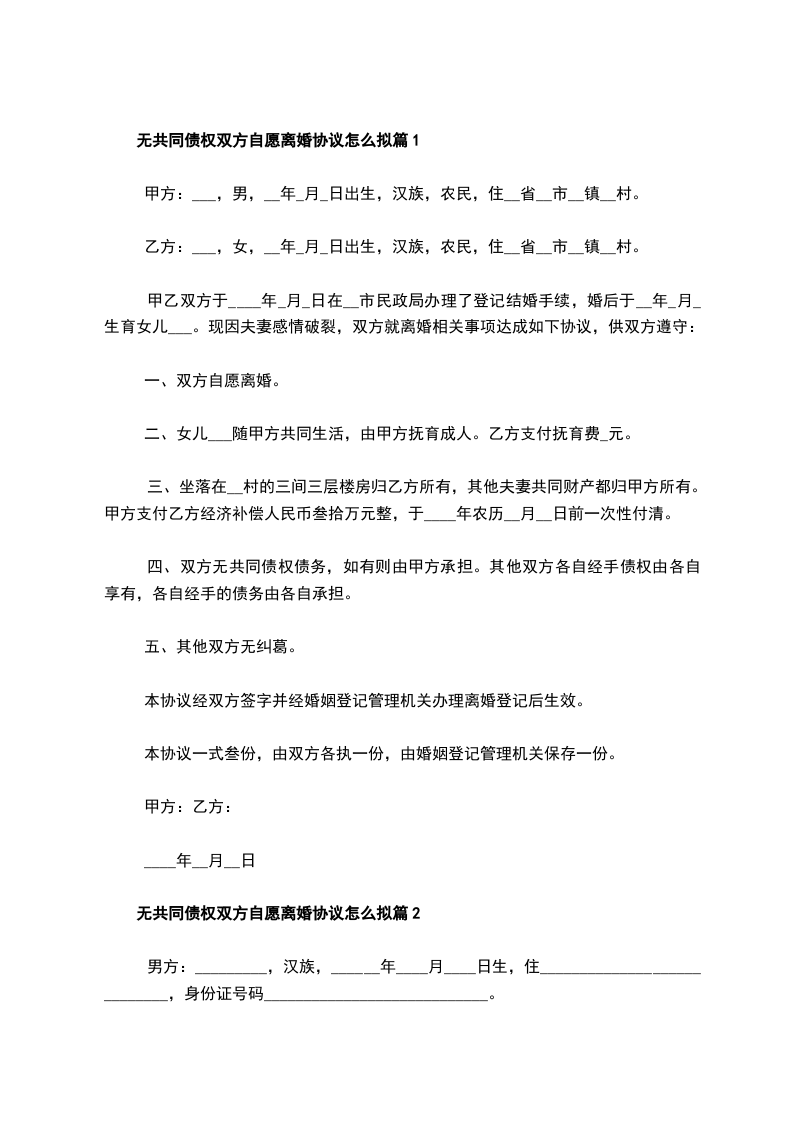 无共同的债权夫妻双方自愿协议离婚书怎么拟篇2