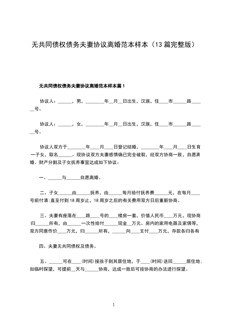 (1)男女双方确认在婚姻关系存续期间无共同债务。
