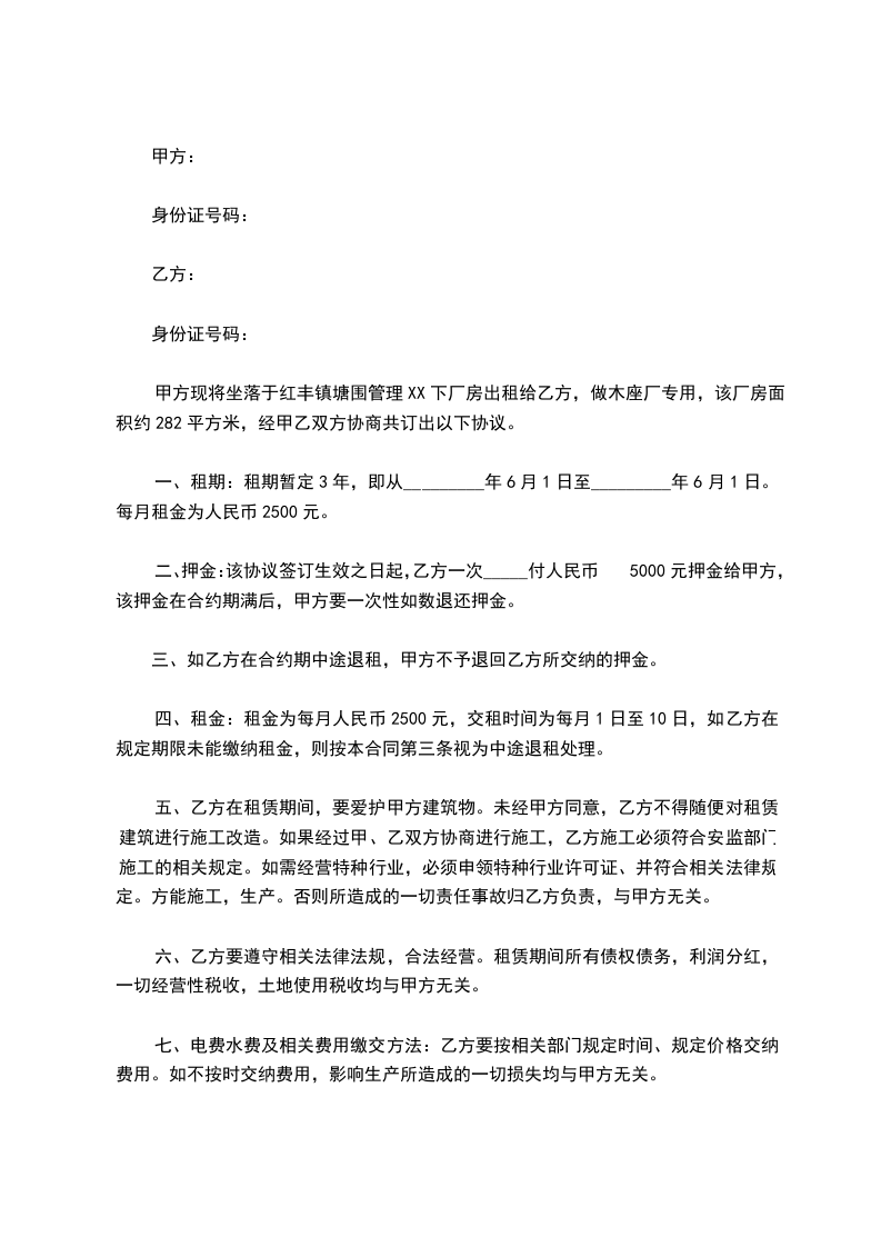 三、乙方在租用期间不得损坏厂房的设施、设备,一切安全责任事故由乙方承担,与甲方无关。