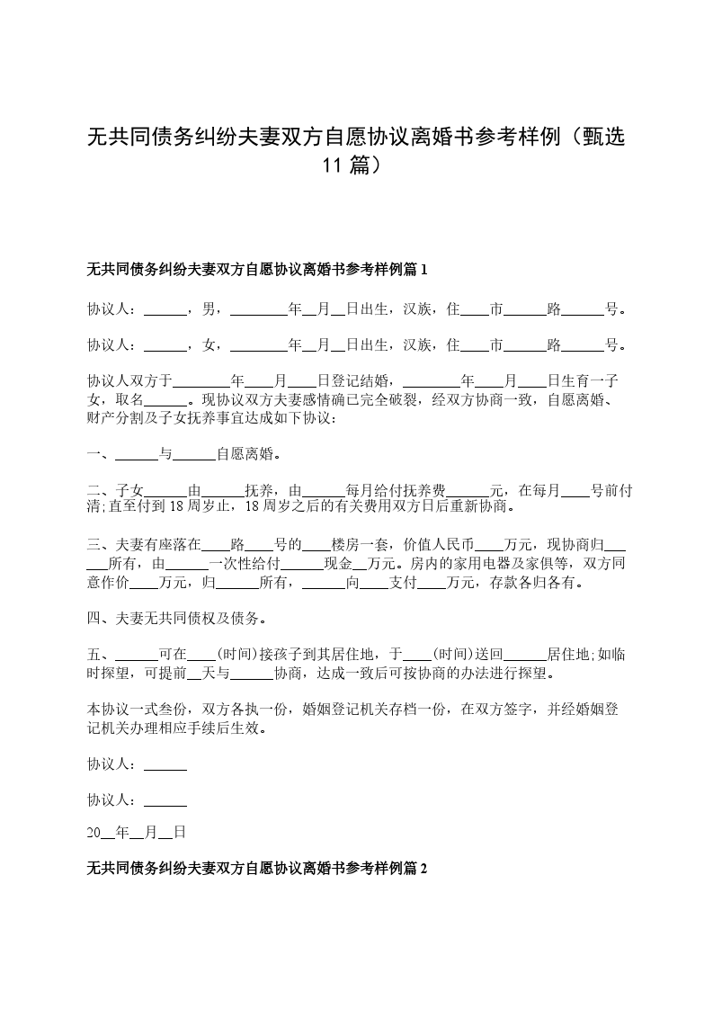 无共同债务纠纷夫妻双方自愿协议离婚书参考样例篇11