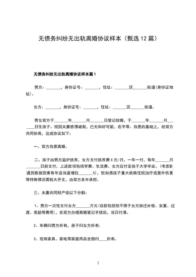 无共同债务纠纷无出轨协议离婚范本参考格式篇12