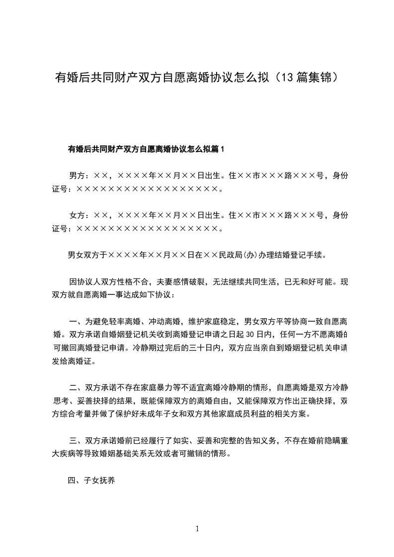 有婚后共同财产双方自愿协议离婚范本篇13