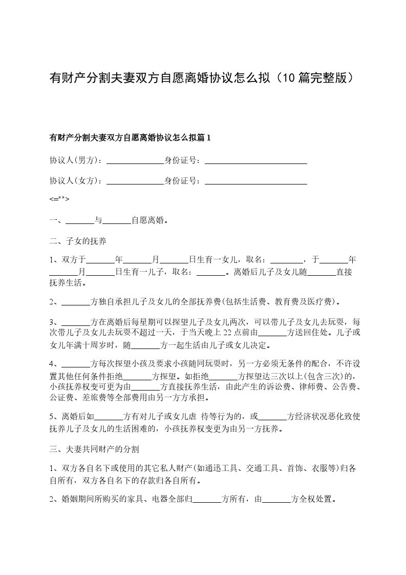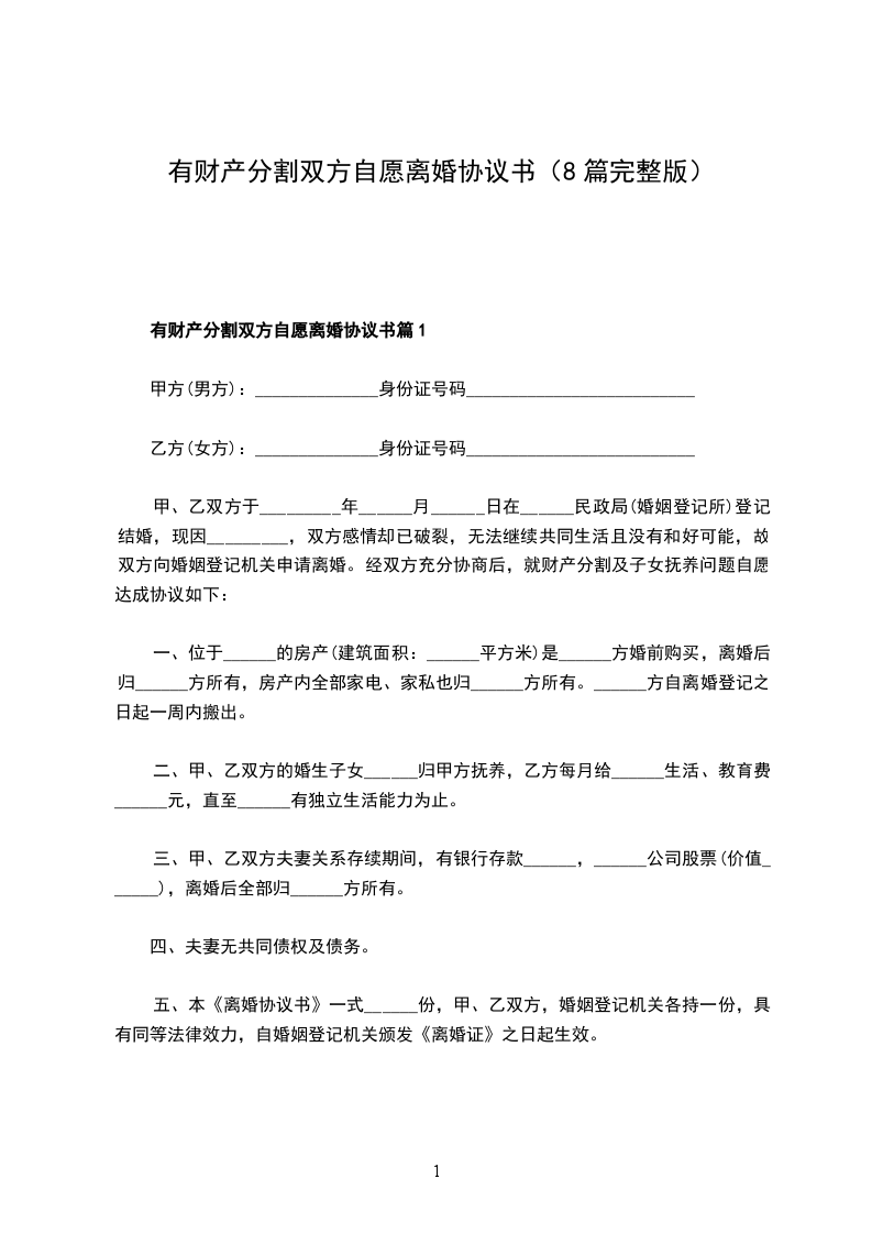 有财产分割夫妻双方自愿离婚协议书篇10