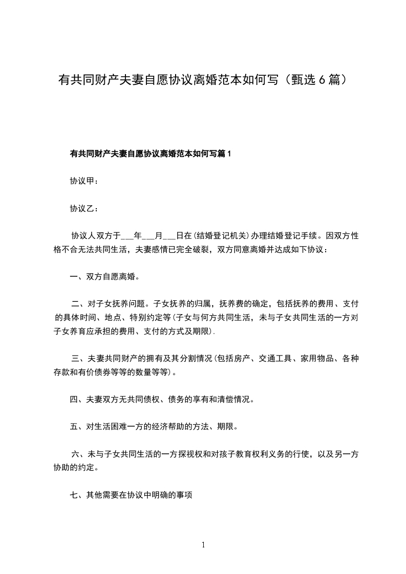 有共同财产夫妻自愿协议离婚范本如何写篇6