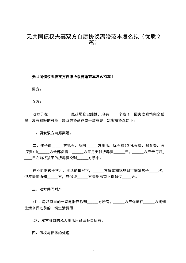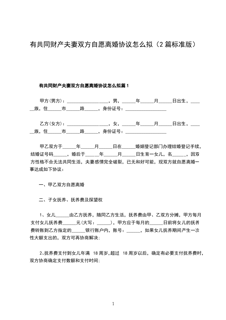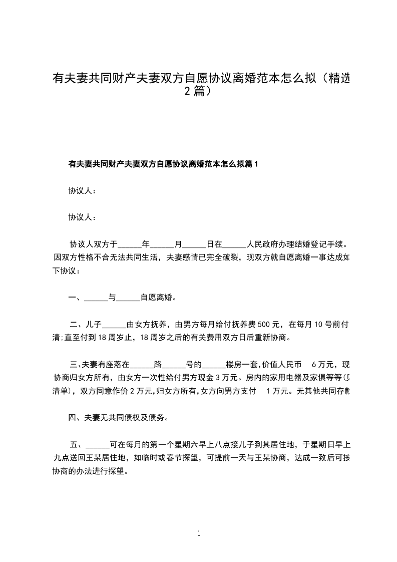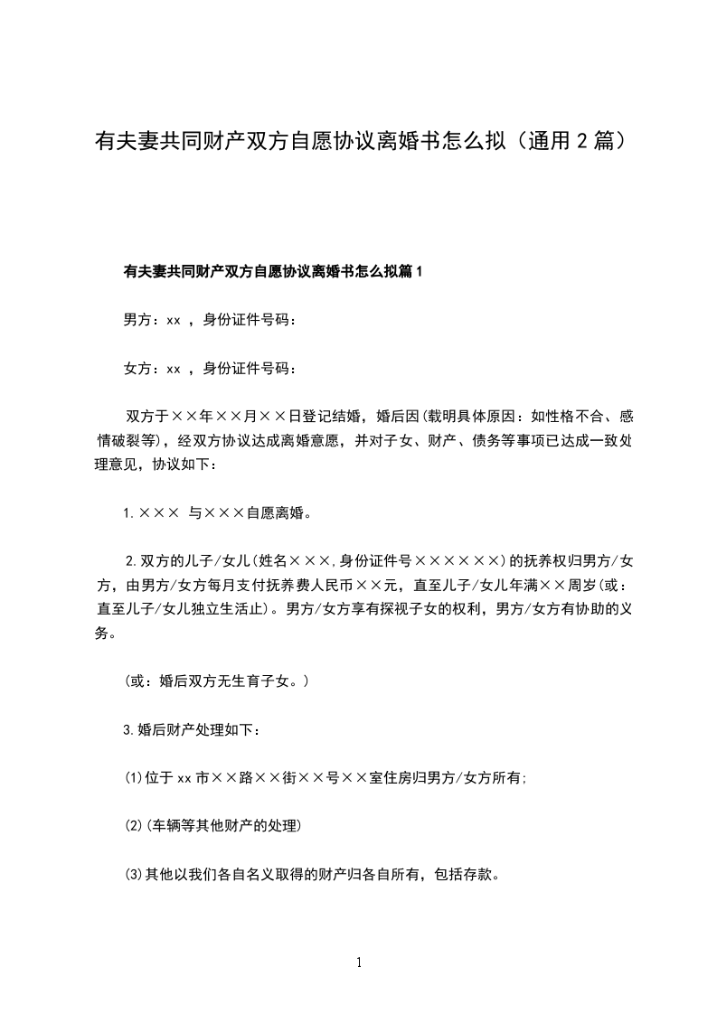 有夫妻共同财产夫妻双方自愿协议离婚范本怎么拟篇2