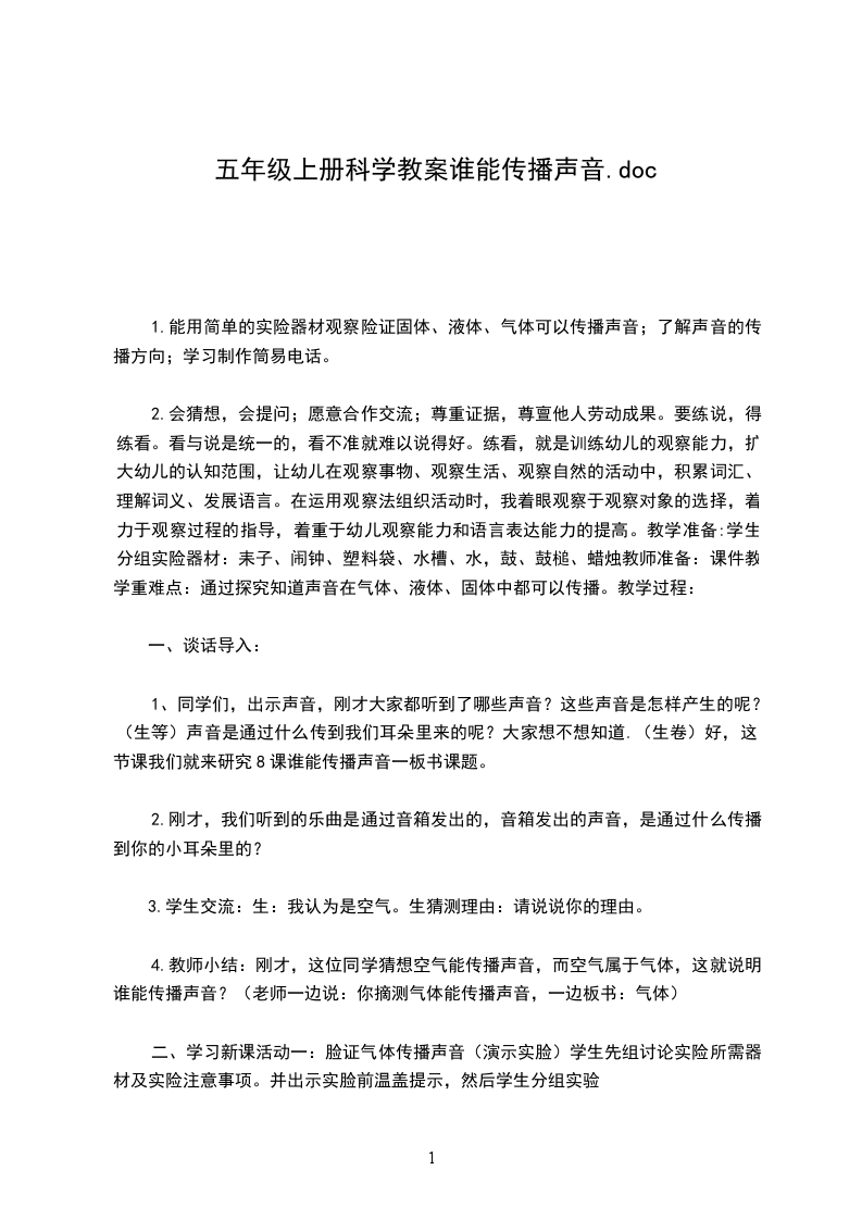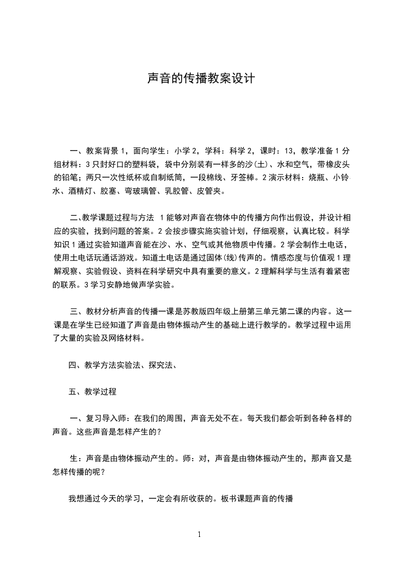 三、教材分析声音的传播一课是苏教版四年级上册第三单元第二课的内容。这一课是在学生已经知道了声音是由物体振动产生的基础上进行教学的。教学过程中运用了大量的实验及网络材料。