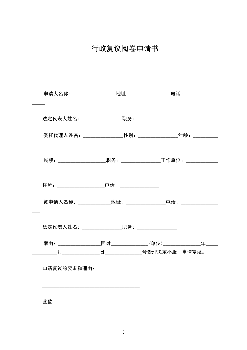 案由:_________________因对_______________(单位)_______________年_______________月_______________日_______________号处理决定不服,申请复议。