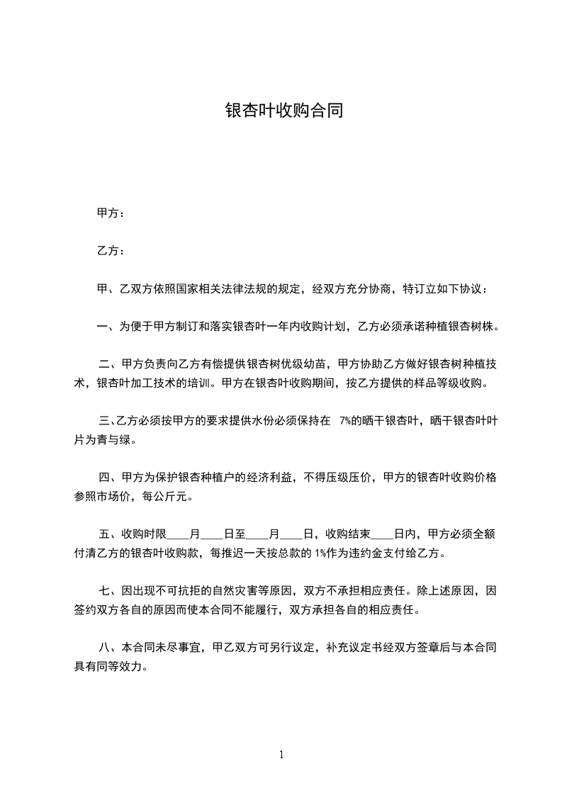 四、甲方为保护银杏种植户的经济利益,不得压级压价,甲方的银杏叶收购价格参照市场价,每公斤元。