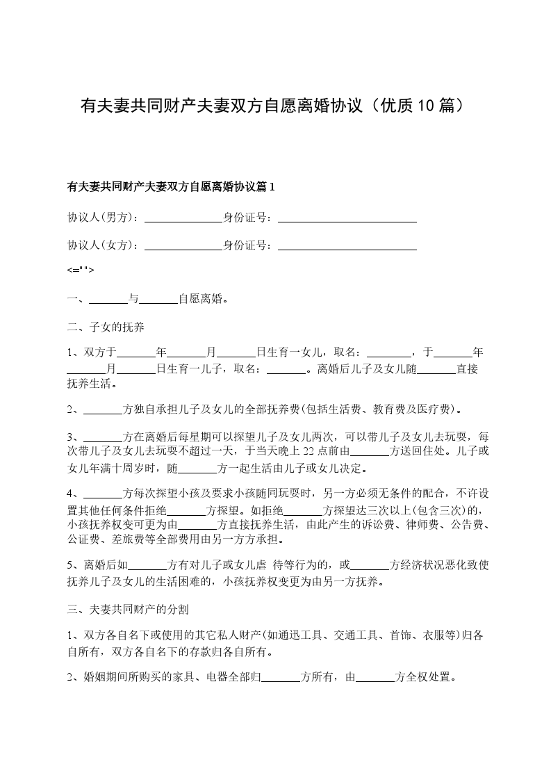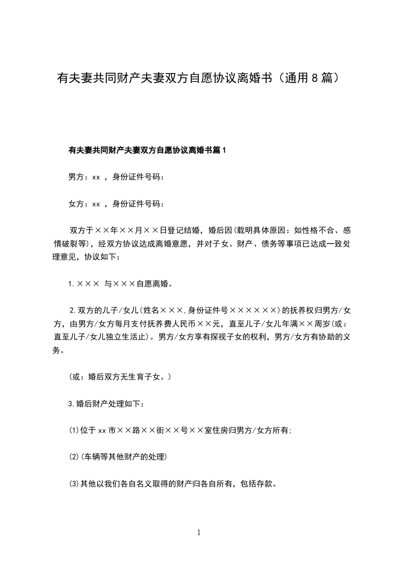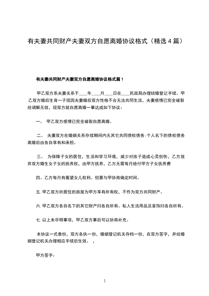 有夫妻共同财产夫妻双方自愿离婚协议格式篇1