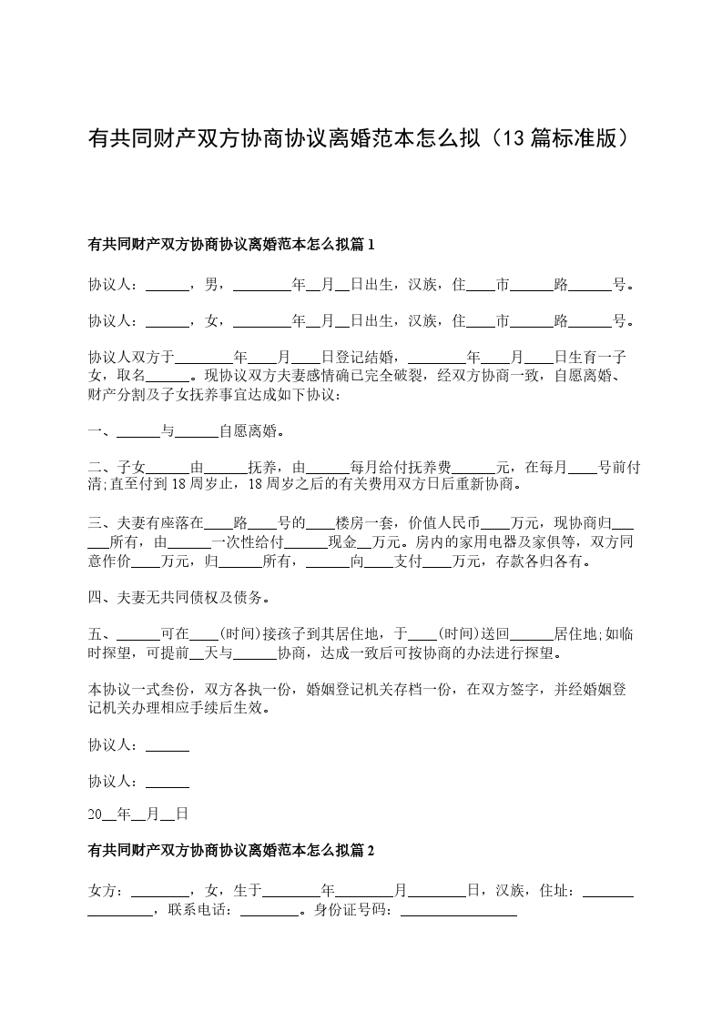 有房子双方协商协议离婚范本怎么拟篇13