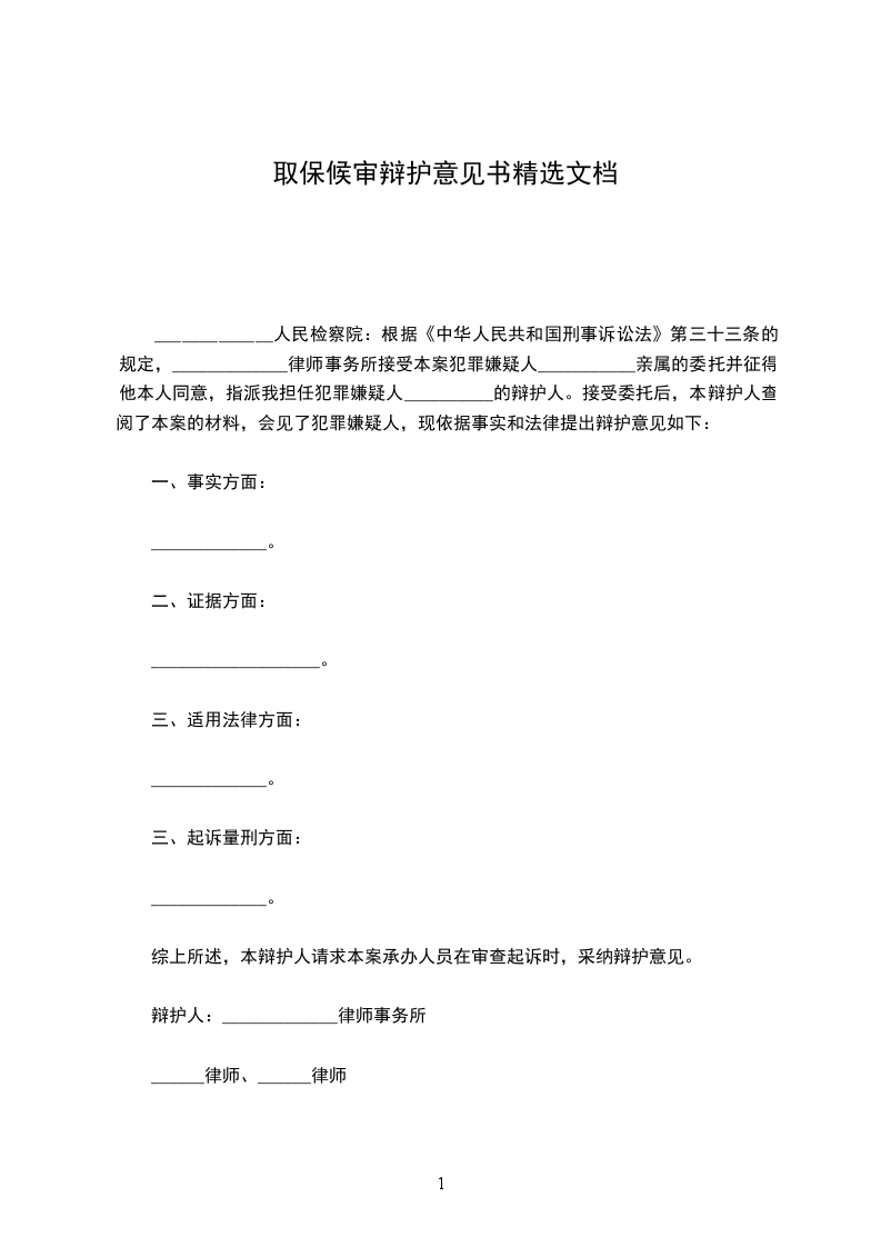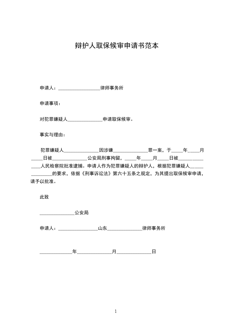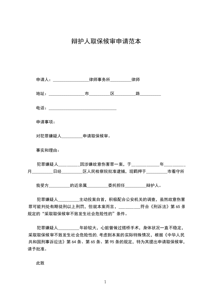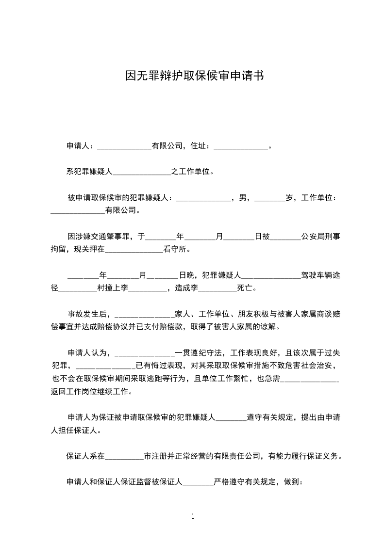 对犯罪嫌疑人__________申请取保候审。