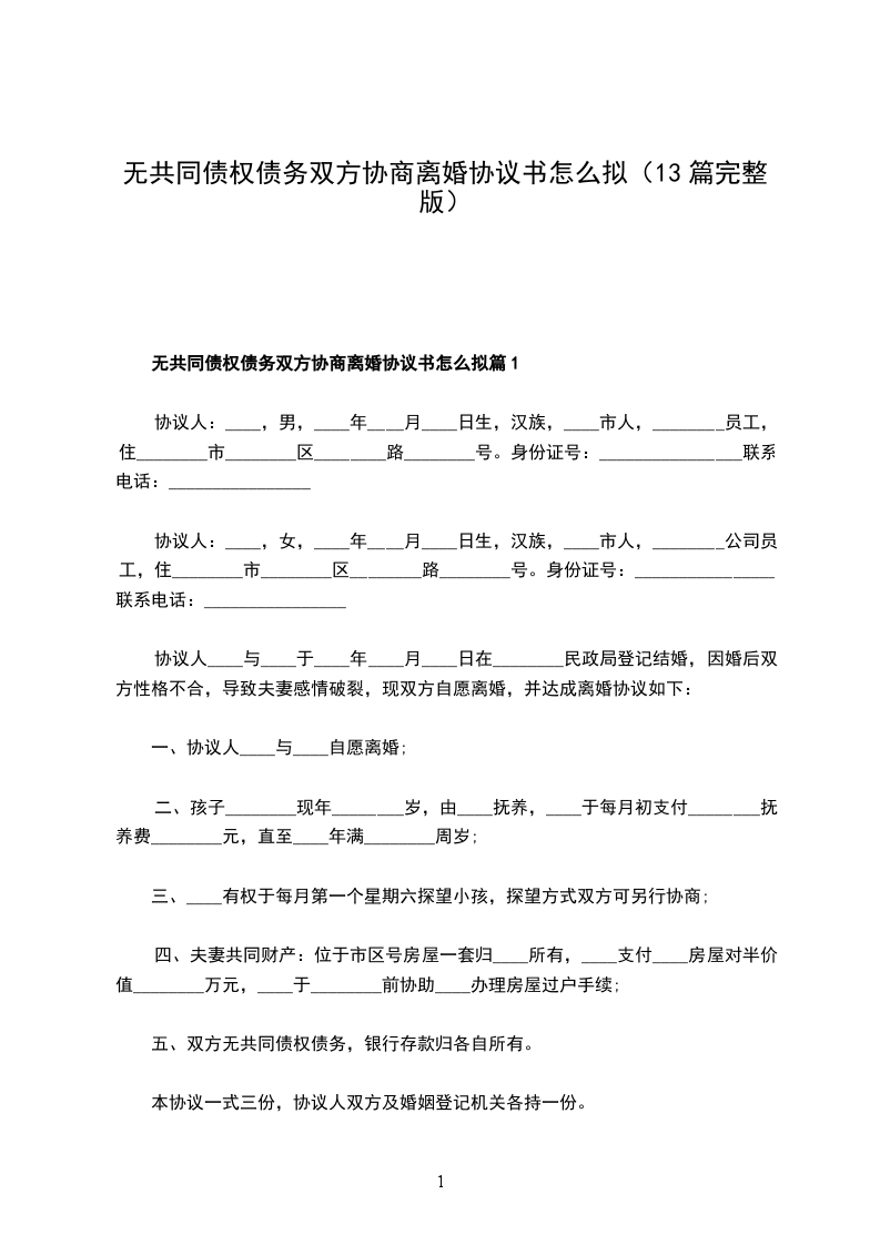 无共同债权债务双方协商离婚协议书怎么拟篇13