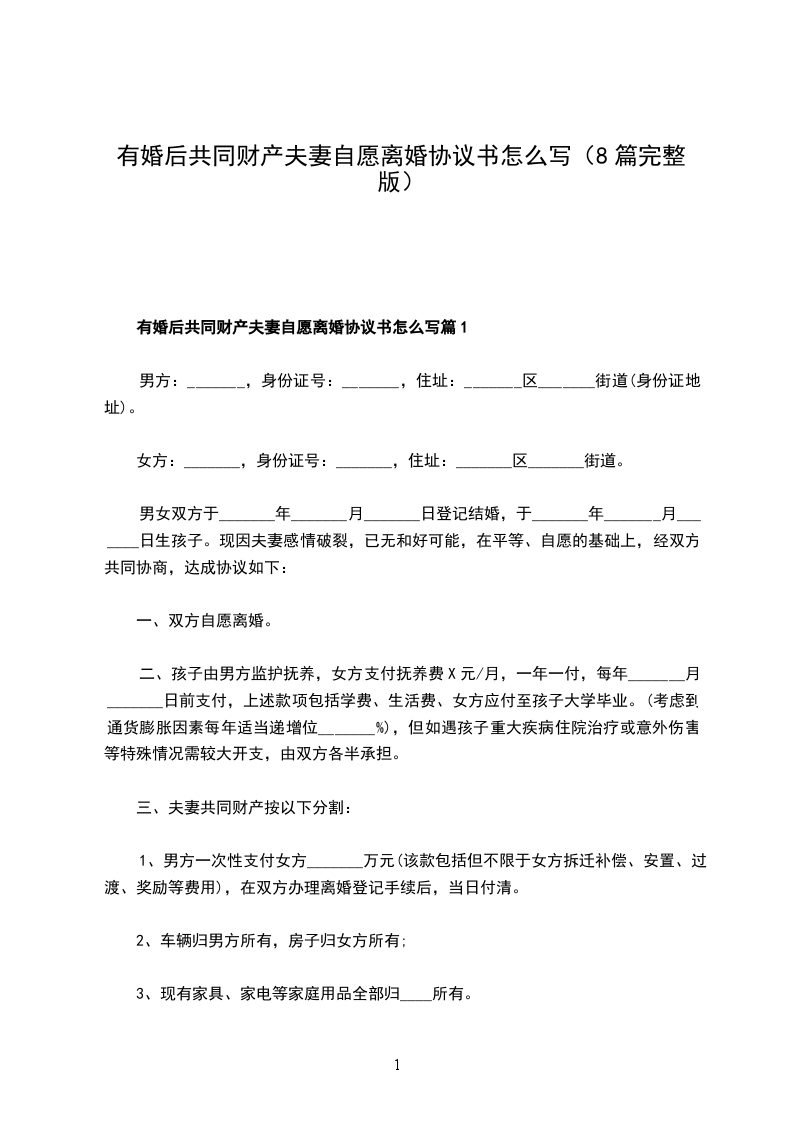 有婚后共同财产夫妻自愿离婚协议书样本篇8