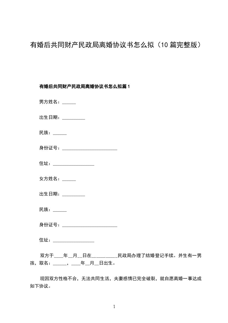 有婚后共同财产民政局协议离婚范本参考样例篇10