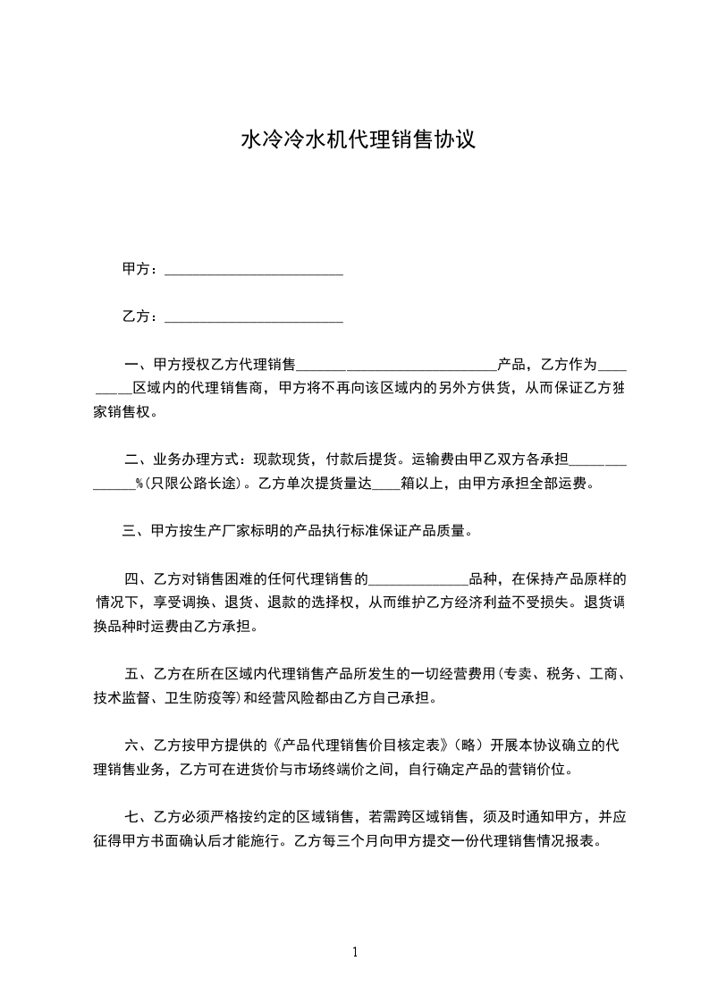 一、甲方授权乙方代理销售____________________________产品,乙方作为_________区域内的代理销售商,甲方将不再向该区域内的另外方供货,从而保证乙方独家销售权。