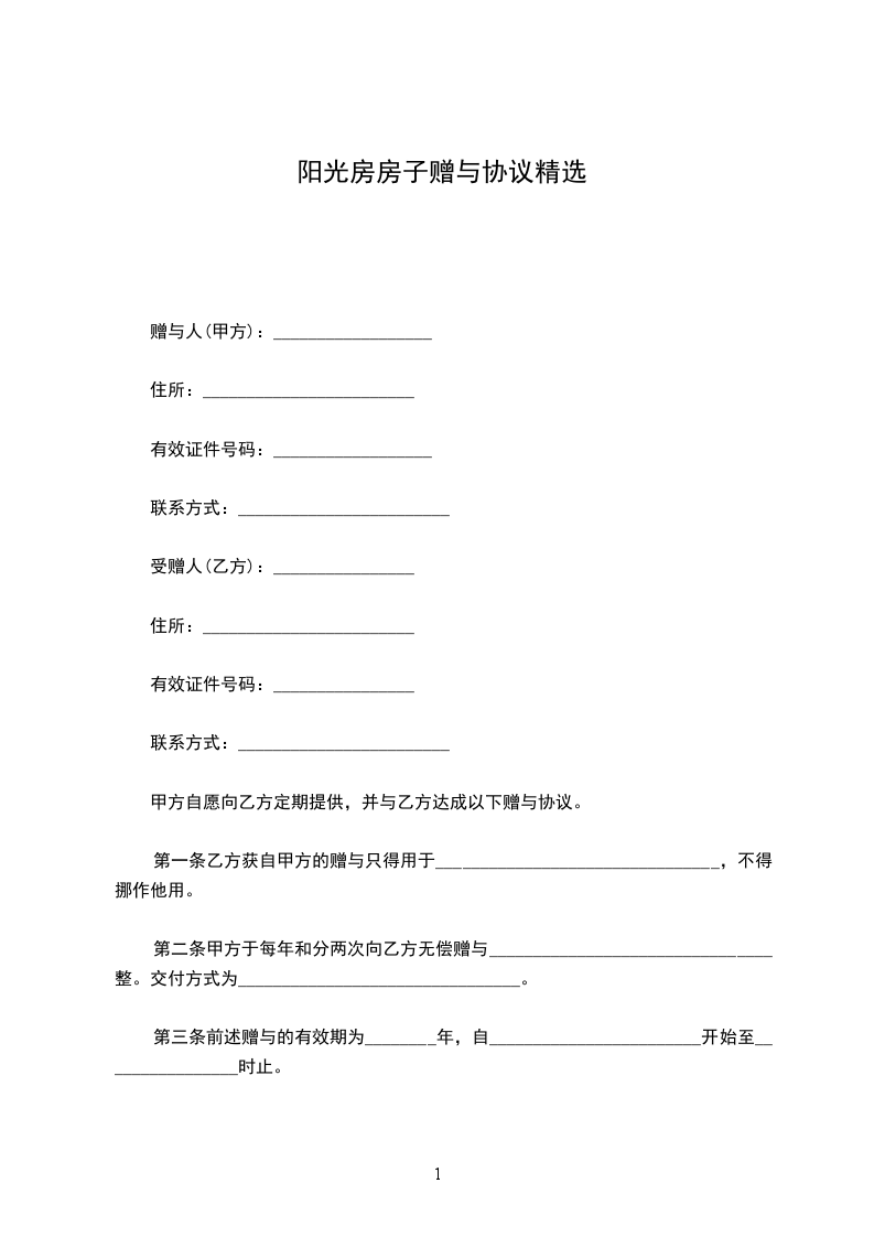 第二条甲方于每年和分两次向乙方无偿赠与________________________________整。交付方式为________________________________。