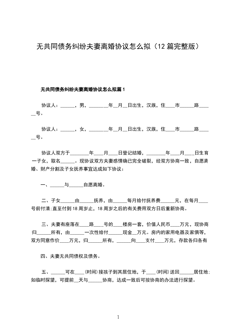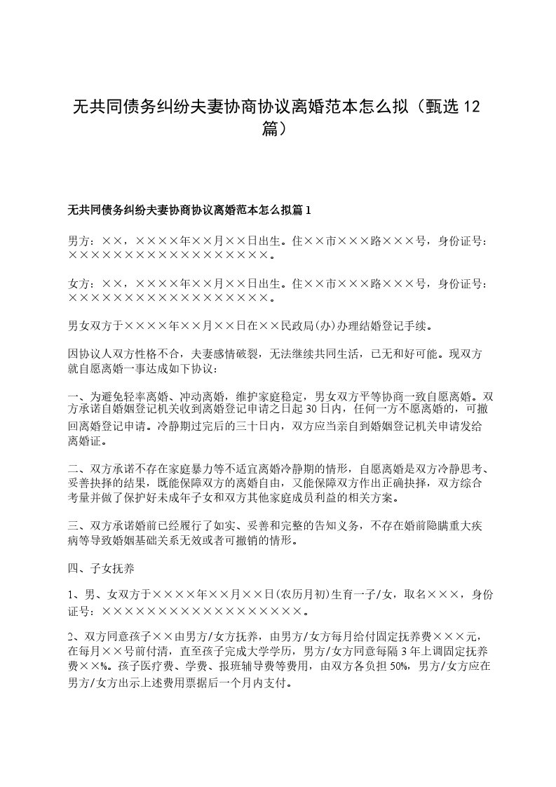 无共同债务纠纷夫妻协商离婚协议书怎么拟篇12