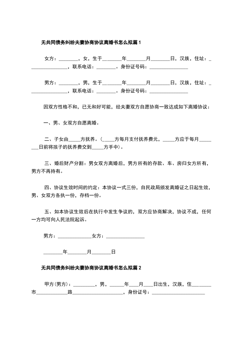 无共同债务纠纷夫妻协商离婚协议书怎么拟篇9