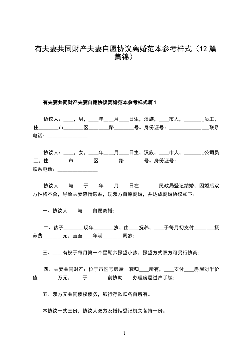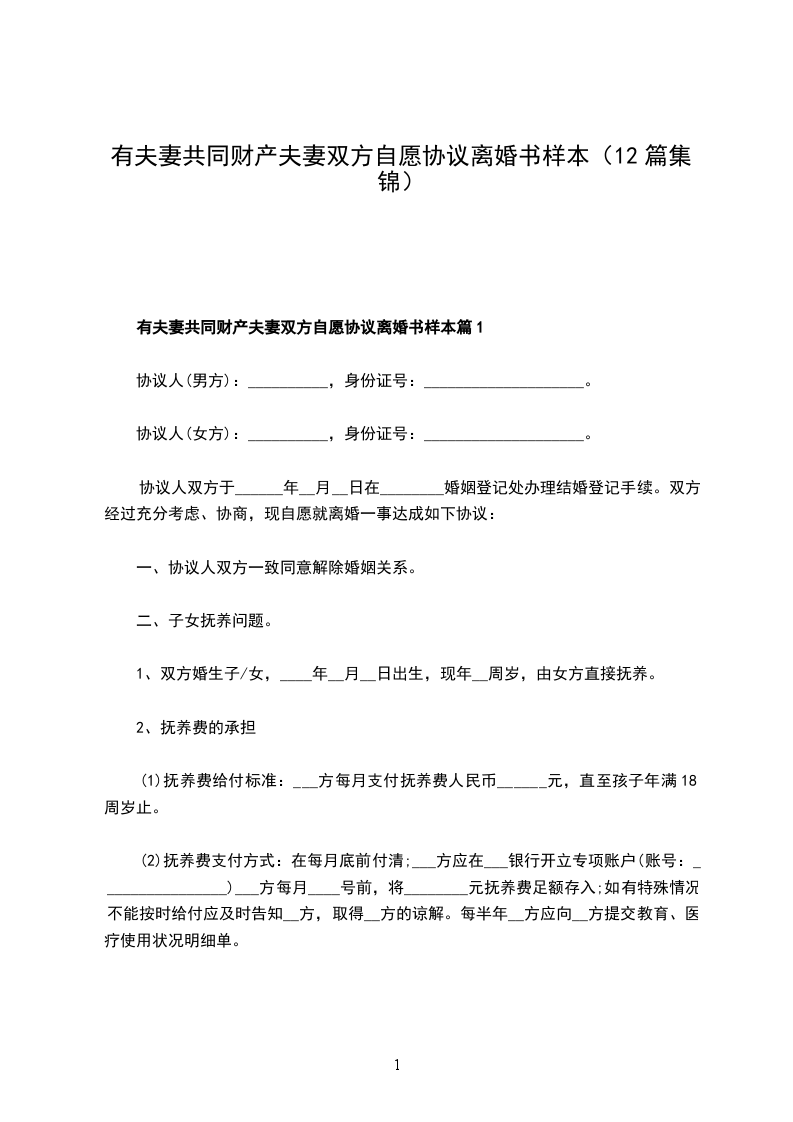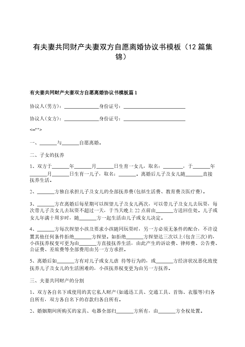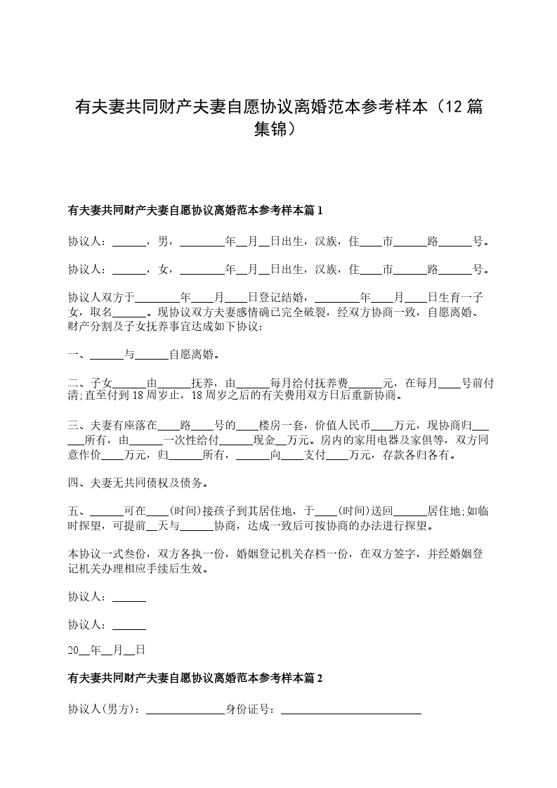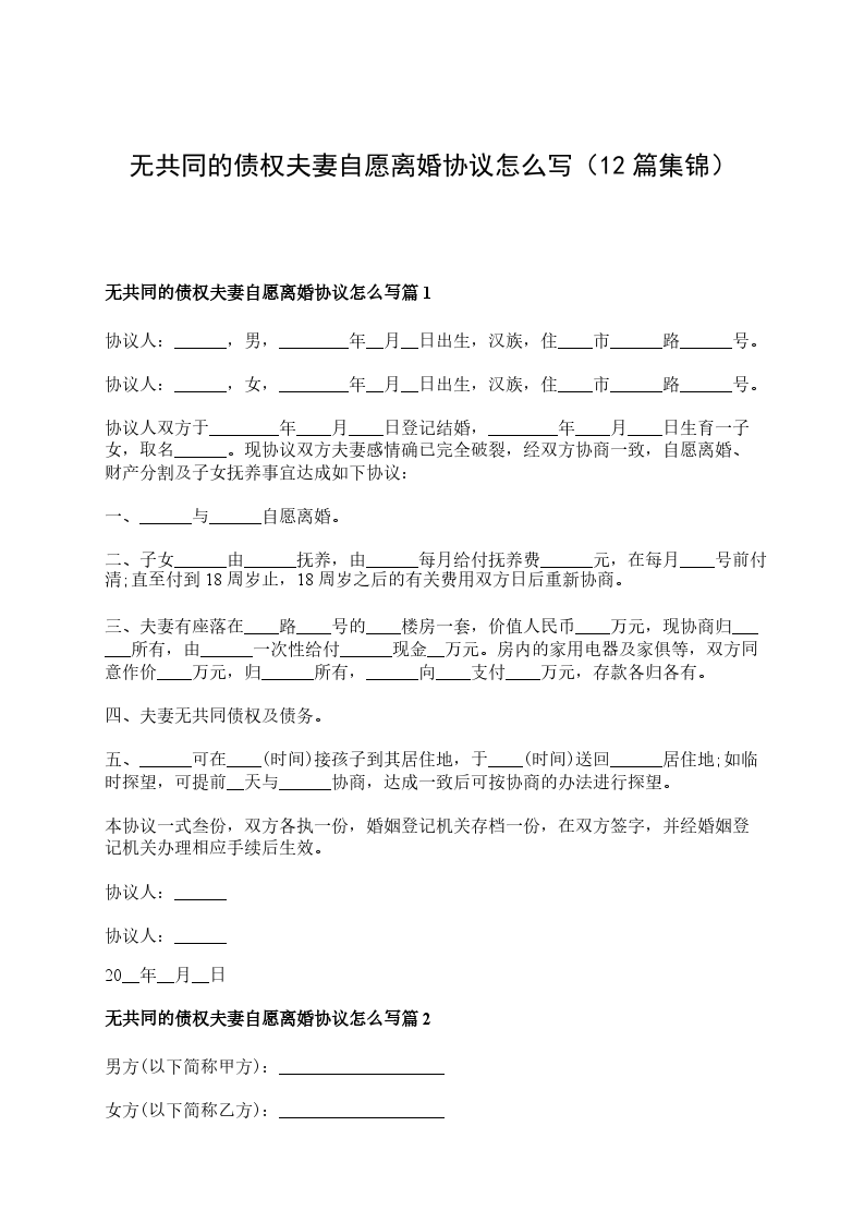 无共同的债权夫妻自愿离婚协议怎么写篇12