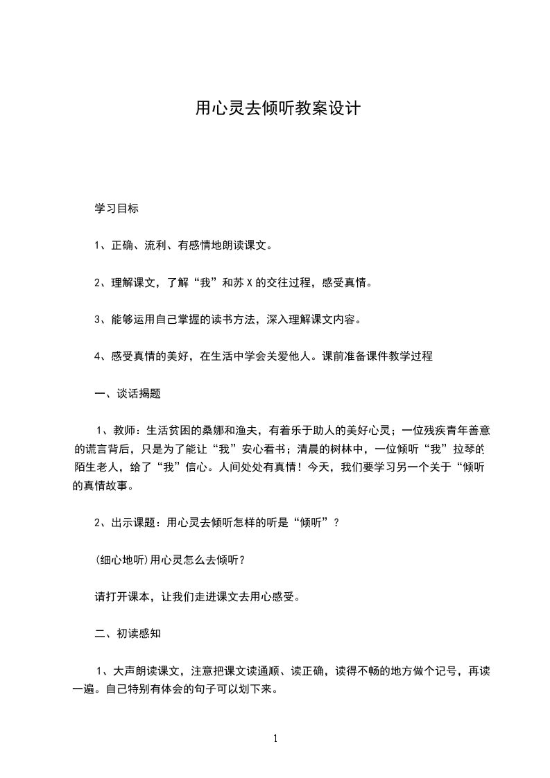 1、同学们,让我们再次读课题,齐读:用心灵去倾听。用心灵去倾听的是什么?