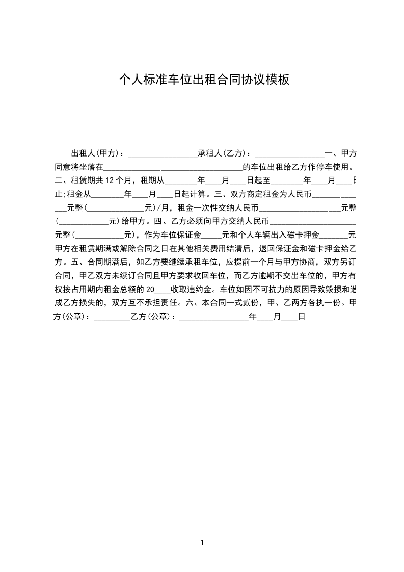 六、违约责任的约定:任何一方违反本协议约定,应支付守约方违约金_________元。