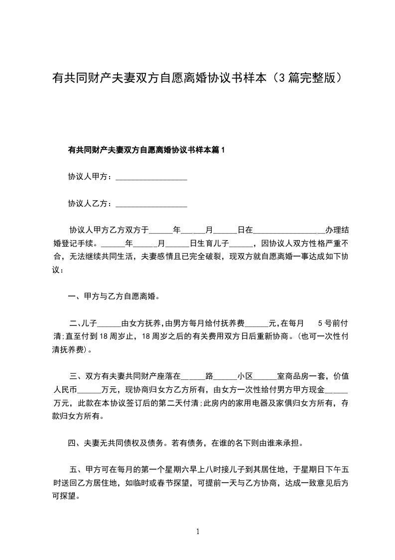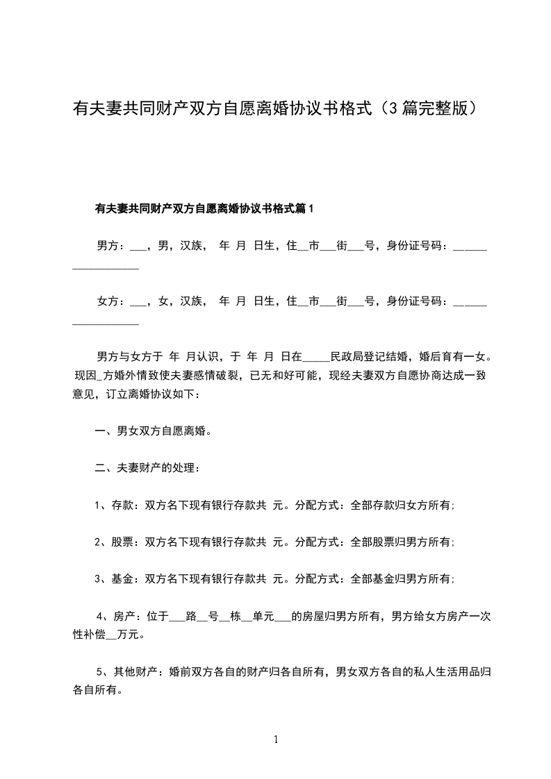 有夫妻共同财产夫妻双方自愿离婚协议模板篇1