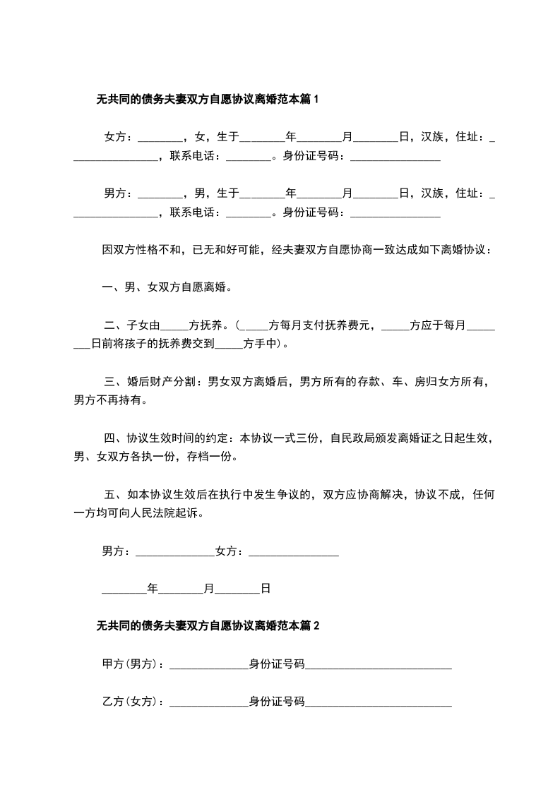 (3)双方确认无其它共同债权、无共同债务。