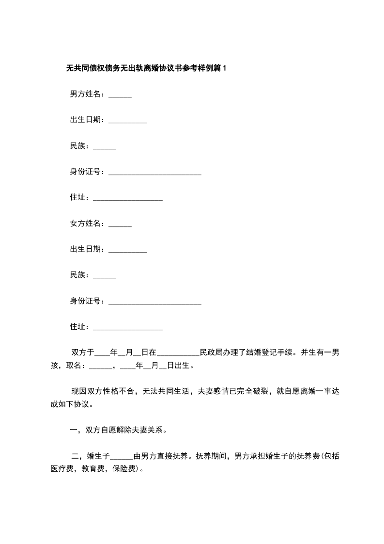 无共同债权债务无出轨离婚协议书参考样例篇5