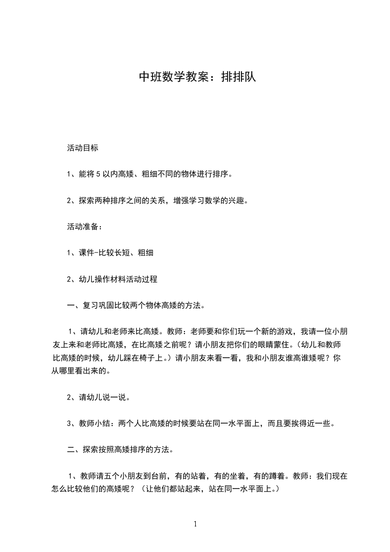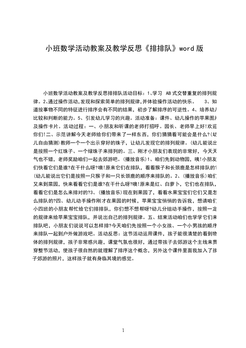 喜洋洋还给每个小朋友准备了图片,你们可以都来试一试。活动反思:本次活动重点是让幼儿感知规律,增强观察和思维能力,已基本上完成了活动目标。但在有些环节上还有待改进,如:每按一种规律排好队后可以用实物让幼儿自己尝试排列。还有本次活动缺乏些趣味性,可以在活动中穿插些小游戏如:让幼儿按男女男女的顺序排好队玩吹泡泡的游戏,这样更能调动幼儿的积极性。