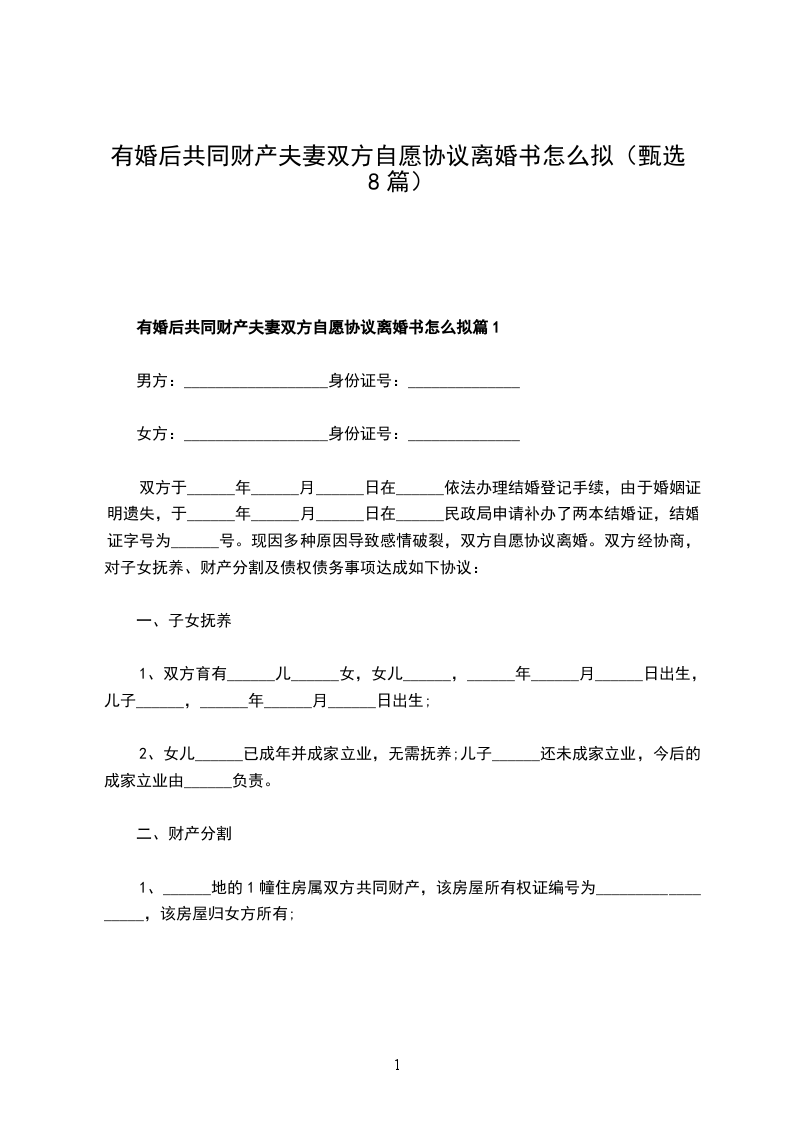 有婚后共同财产双方自愿协议离婚范本怎么拟篇8