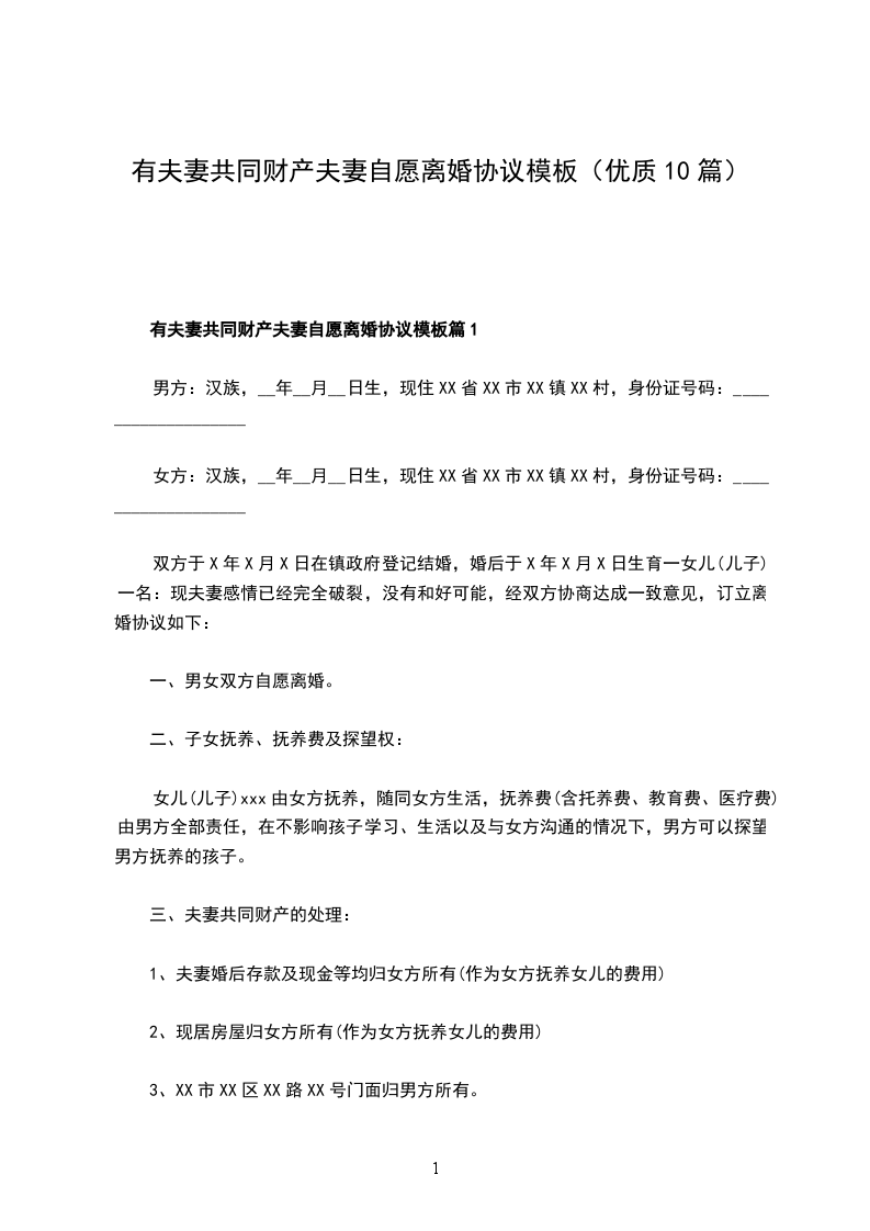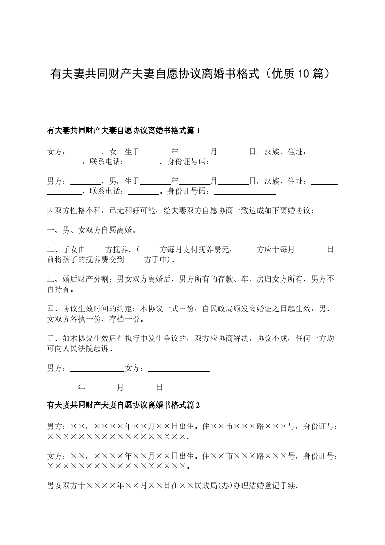 有夫妻共同财产夫妻自愿离婚协议书样本篇10
