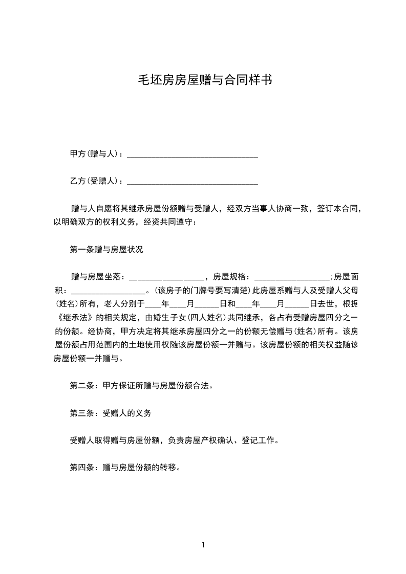 1.赠与标的的状况:_____________________。(包括赠与标的的名称、数量、质量、所在地等)