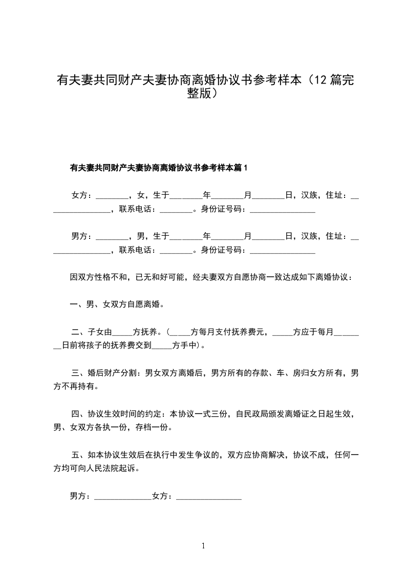 有夫妻共同财产夫妻协商离婚协议书参考样本篇12