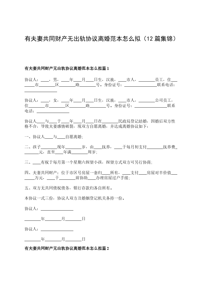 有夫妻共同财产无出轨协议离婚范本怎么拟篇12
