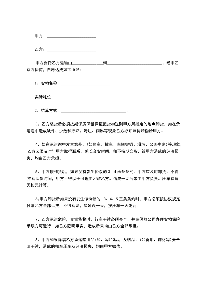 6.乙方送货或代运的产品,如甲方拒绝接货,甲方应承担因而造成的损失和运输费用及罚金。