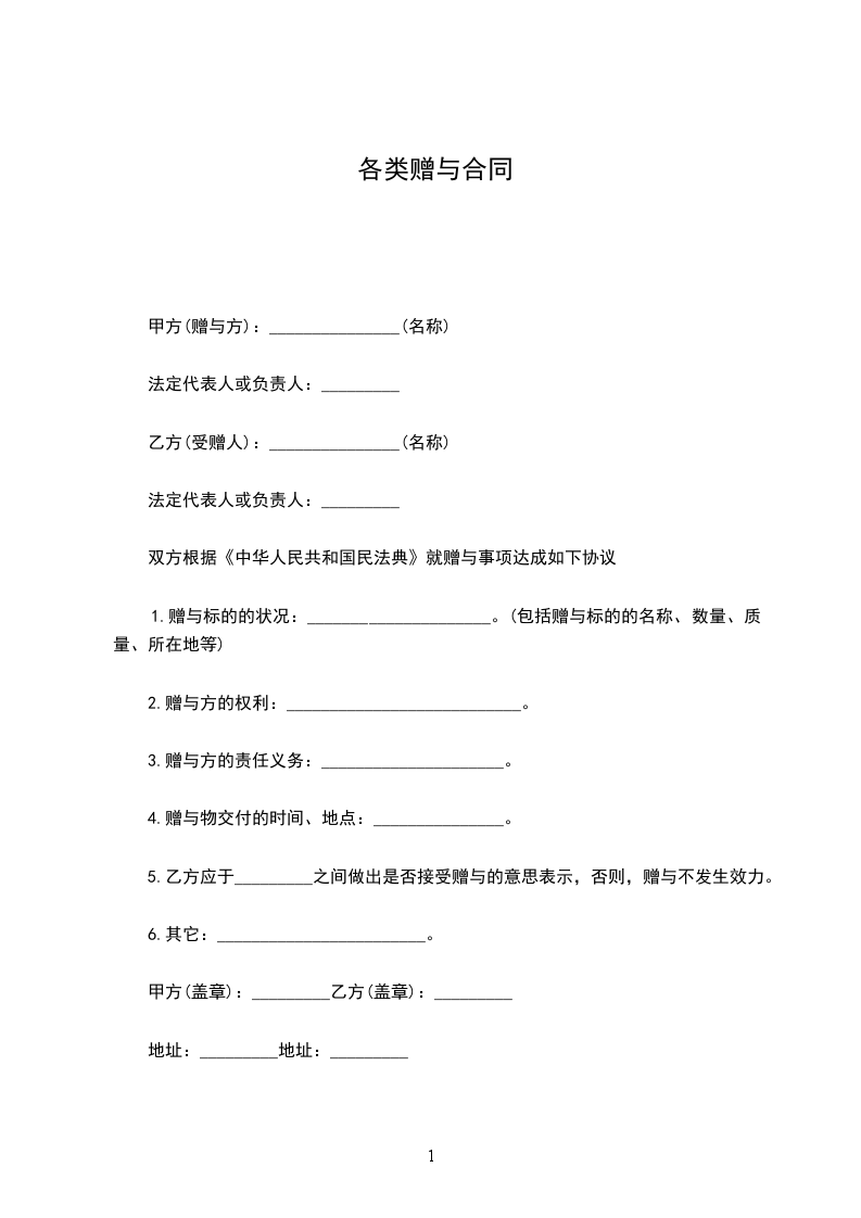 双方根据《中华人民共和国民法典》的`规定,就赠与事项达成协议如下: