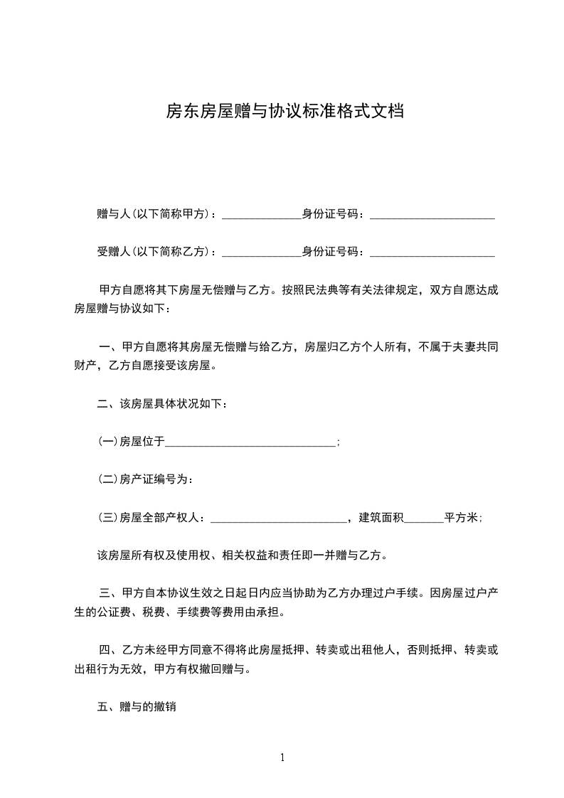 甲方自愿将其下房屋无偿赠与乙方。按照民法典等有关法律规定,双方自愿达成房屋赠与协议如下: