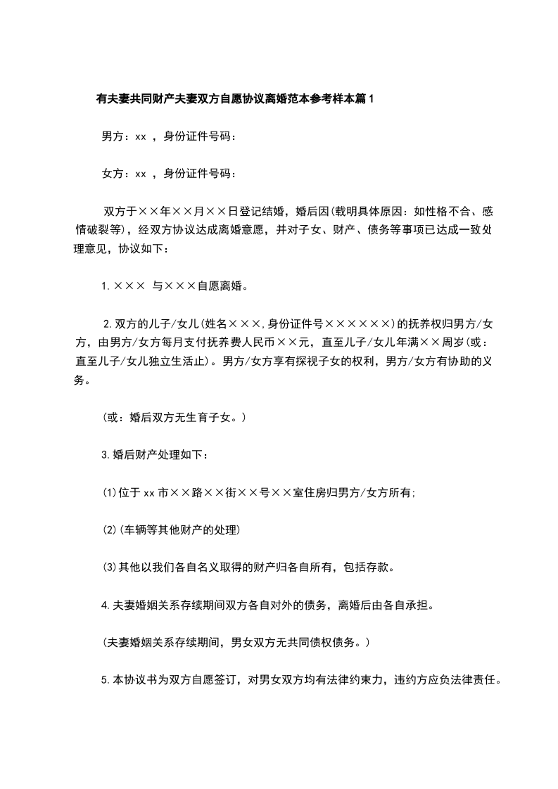 有夫妻共同财产夫妻自愿协议离婚范本样本篇5