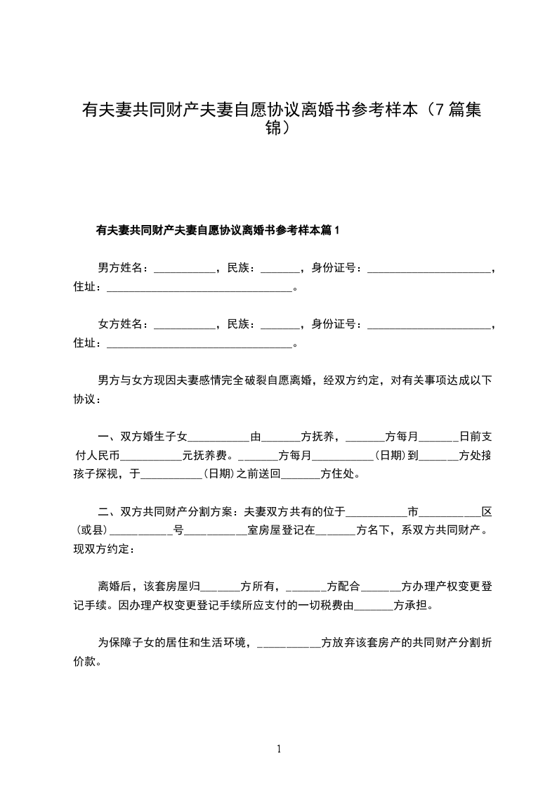 有夫妻共同财产夫妻自愿协议离婚范本样本篇7