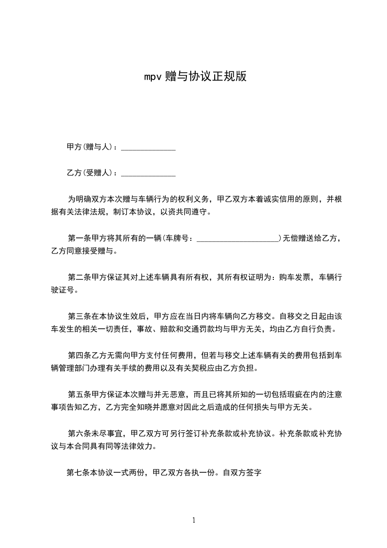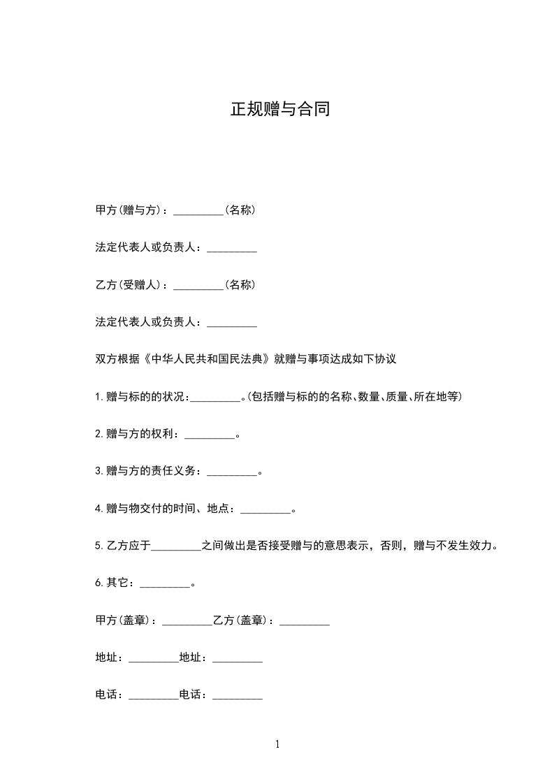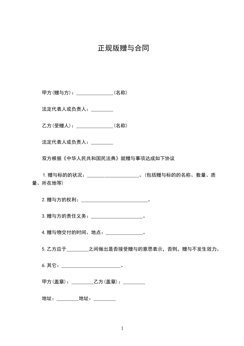 正规赠与合同
