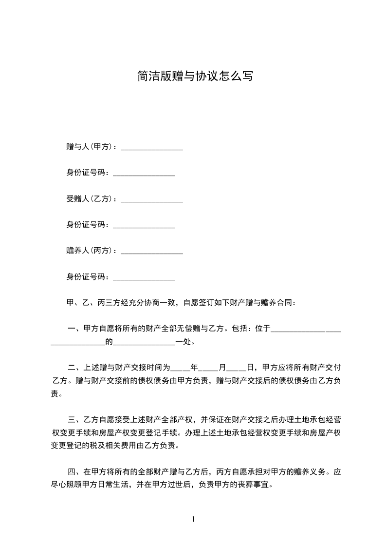 甲、乙、丙三方经充分协商一致,自愿签订如下财产赠与赡养合同: