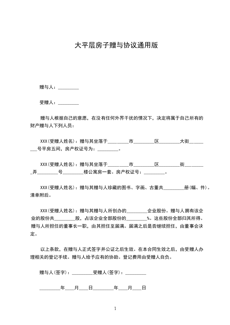 1.赠与标的的状况:_____________________。(包括赠与标的的名称、数量、质量、所在地等)