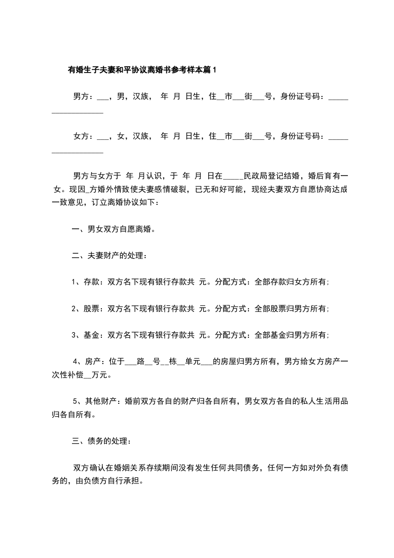1、甲乙双方确认在婚姻关系存续期间无发生的共同债务。