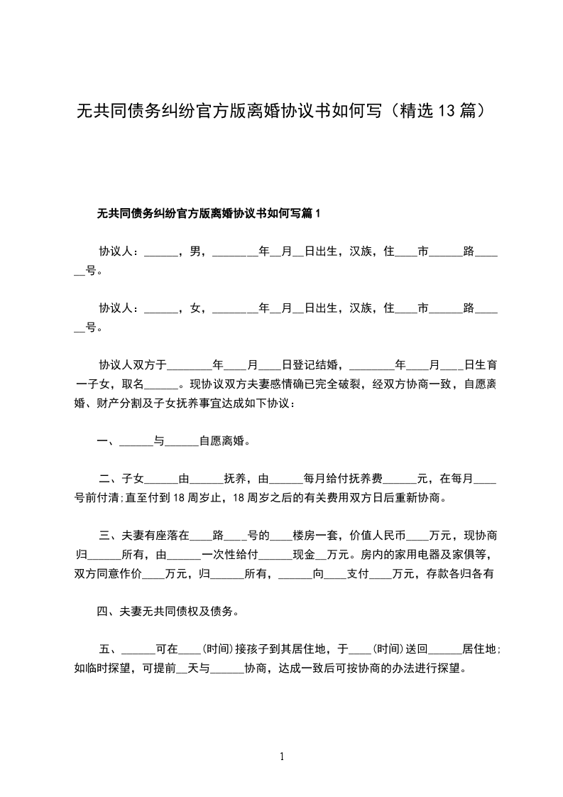 无共同债务纠纷官方版离婚协议书如何写篇13